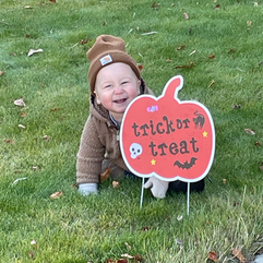 Give me all the fall vibes, but Halloween decorations only go up for Halloween. So we went outside to put up our lawn signs. Can you even with this cutie-patootie?!