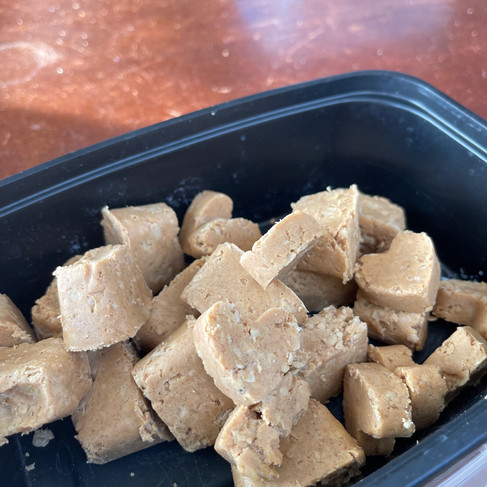 Well, those were a hit, so I got myself some silicone molds from the local Dollarama, and whipped up some protein bites. As you can see, these were also a hit!!