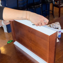 6. Score (press down along the corner/edge to create a "fold" or "indent") the inside edge of the frame, and press the vinyl down on the inside edge wrapping it all the way to the inside panel.